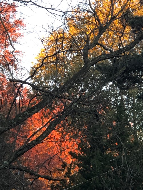 I am fascinated anew by the dawn light. We’ve had a spell of grey, overcast days in which the arrival of day has been muted and silent. This morning was clear and crisp, and the sun used the autumn trees to burst open the day!