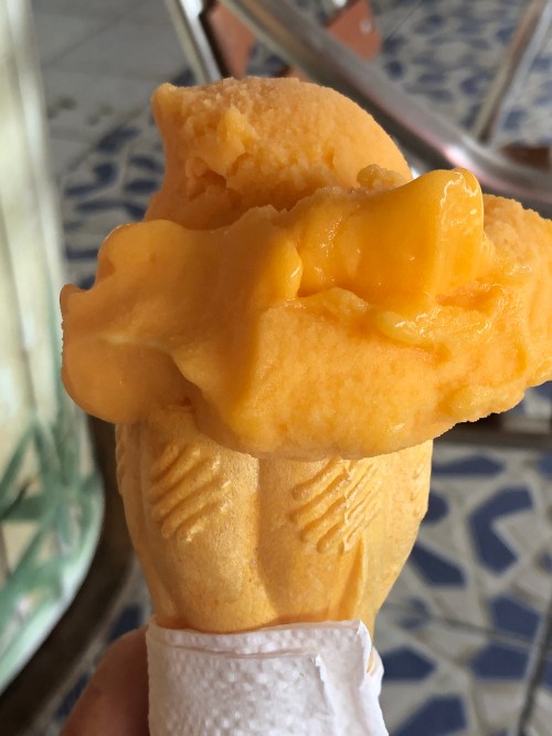 It’s often fairly hot at least compared to where we live. My husband got in the habit of stopping at a small ice cream/gelato shop and getting a cone. I never even went in the the shop; they are all open air so that’s not quite as standoffish as it might seem. Ice cream and my digestive system do NOT get along, so what was the point. I’ll be honest, there was some green-eyed envy going on while he ate that delicious cold treat!