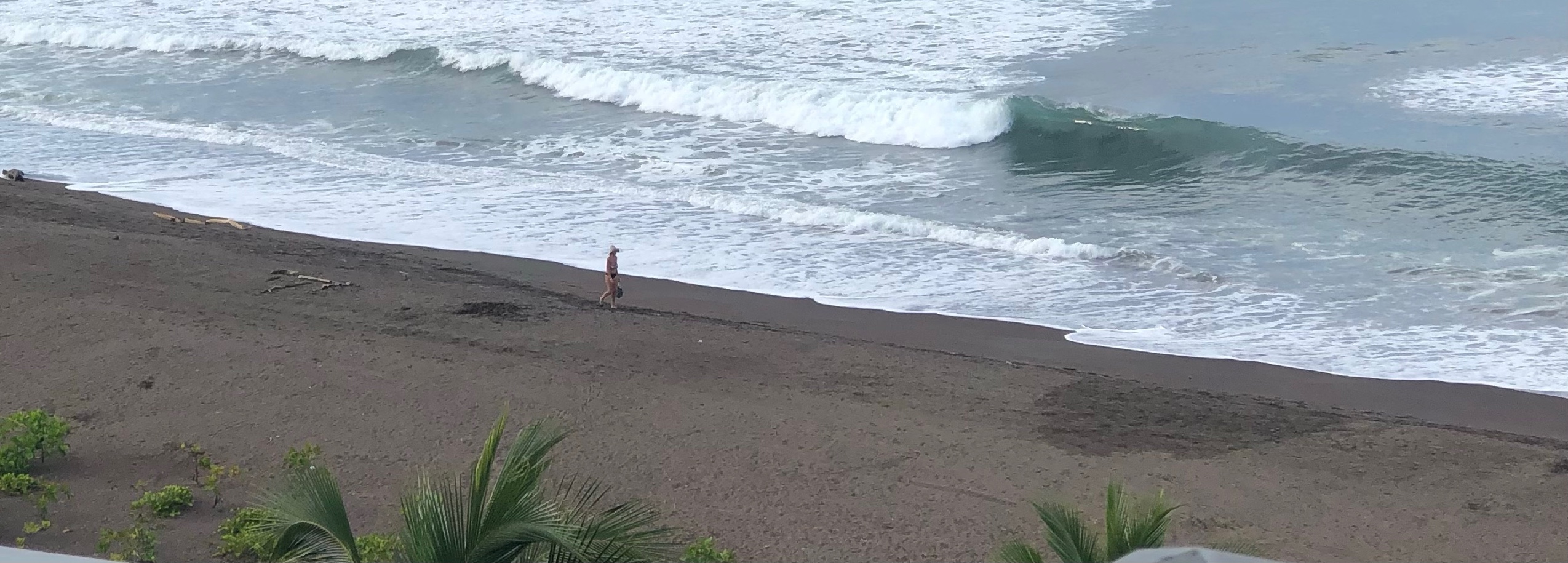 Costa Rica has some very lovely beaches. Part of the reason, as we have discovered during our stays, is there are crews of public employees sent every week or two to clear away any rubbish or debris on the beaches. They cut up trees that have washed up on the beach, clean up trash, and in general make the beaches friendly again. That’s especially nice for people who are beachcombers, such as the woman in the middle of the picture.